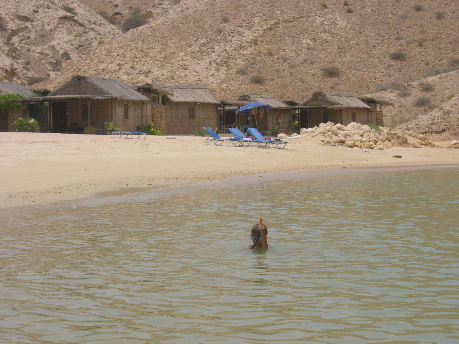 Il marinaio è un ragazzo omanita che conosce una ventina di parole di inglese. Noi conosciamo tre parole tre di arabo, quindi la conversazione equipaggio-clienti non è delle più brillanti. A bordo, viveri di conforto vari e macchina fotografica. E l’attrezzatura da apnea. Anche se, teoricamente, bisognerebbe osservare i cetacei dalla barca, FUORI DALL’ACQUA. Ma io preferisco essere pronto ad ogni evenienza: mica si può rischiare di essere colti impreparati di fronte a qualche incontro eccezionale, no? E poi ho un piano abbastanza strambo, che giace latente da anni nella mia testa di maniaco-ossessivo del mare e che potrebbe trovare realizzazione proprio oggi.