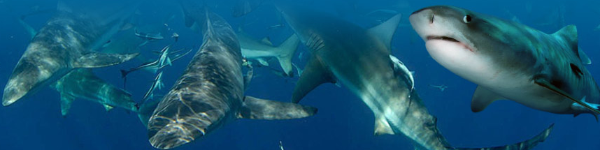 Praticamente atterro sulla schiena di uno squalo pinna nera oceanico, un carcharhinus limbatus: sono ovunque, ce ne saranno 60, 80, forse di più, chi può dirlo. Ci urtano, ci passano tra le gambe. Bestie irruenti di due metri e mezzo, fa un po’ impressione trovarseli addosso; eppure è evidente che ci ignorano: pensano solo alla pastura, girano veloci alla ricerca di brandelli di pesce. In mezzo, più guardingo, c’è anche qualche “dusky”, lo squalo bruno (carcharinus obscurus).